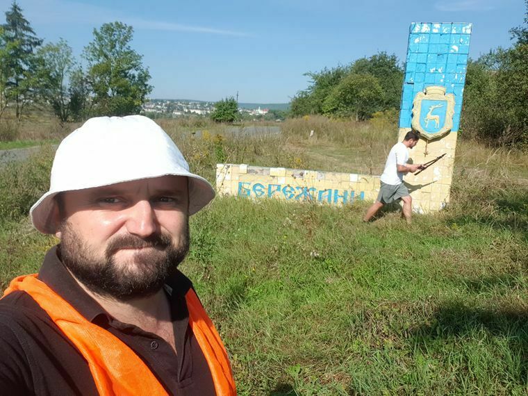 Відновлення пам'ятного знаку на в'їзді до міста Бережани силами команди Ростислава Бортника