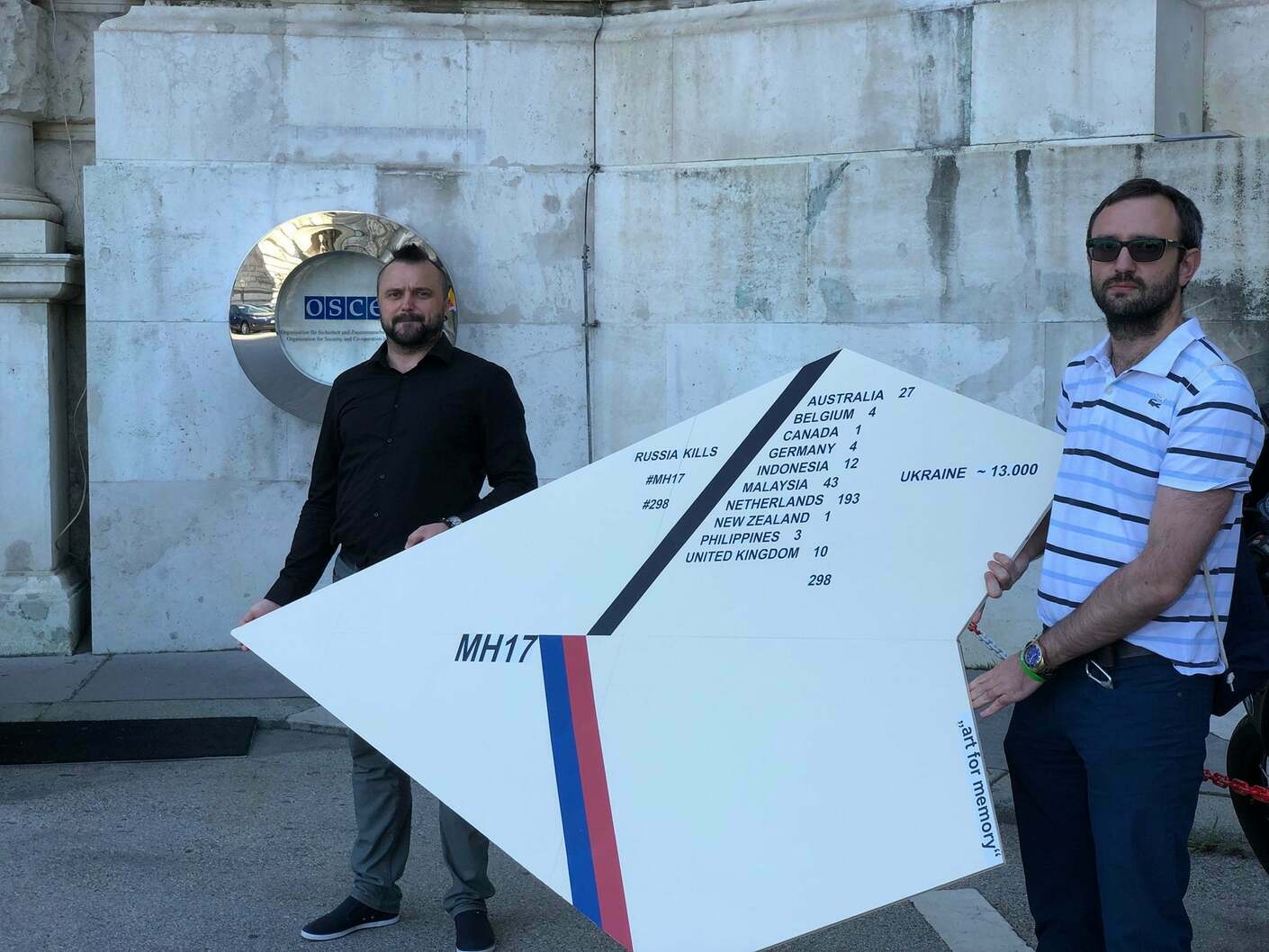 Я зробив великий двометровий літак, на ньому написав кількість жертв, кількість жертв в Україні і поставив перед ОБСЄ. Це зовсім інакше сприймали. Ми мовчки стояли біля нього, але це привернуло увагу, люди підходили і цікавилися. Потім ми з тим літаком ходили по центру Відня.