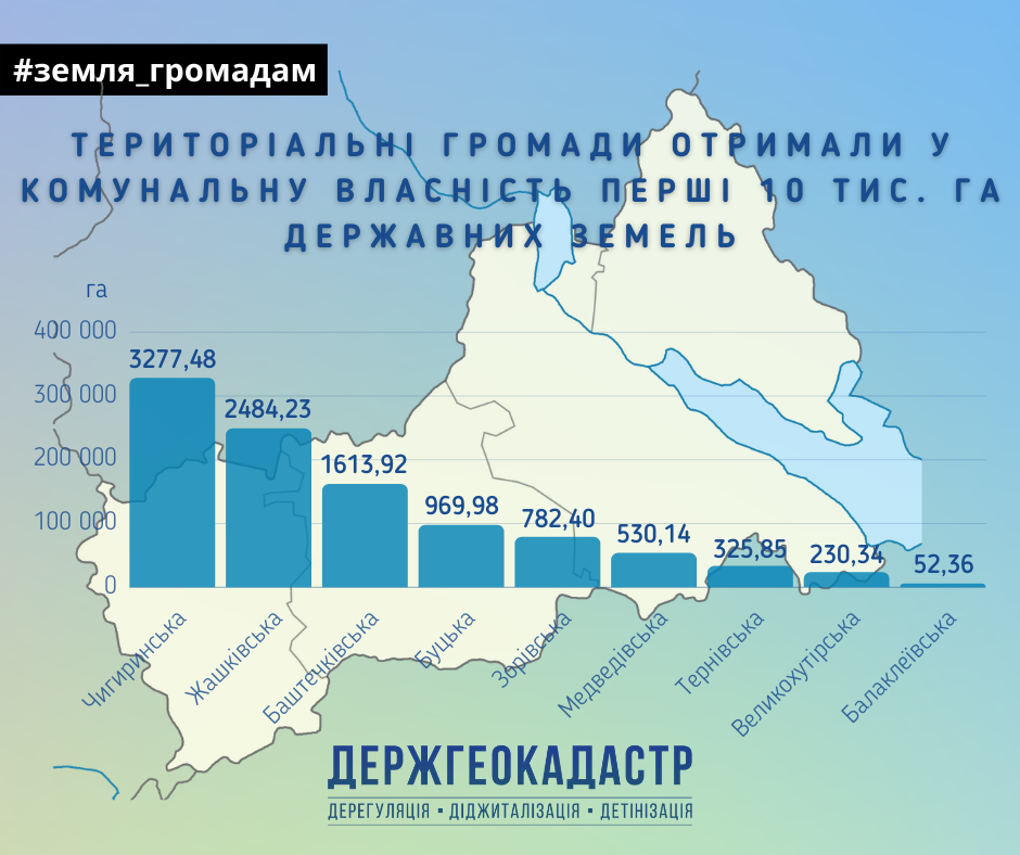 Усього до кінця 2020 року у комунальну власність черкаських ОТГ буде передано близько 120 тис. га земель сільськогосподарського призначення державної власності.