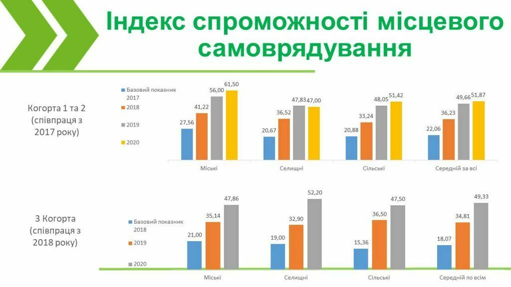 – Сільські громади – Дмитрівська територіальна громада Кіровоградської області та Миколаївська територіальна громада Дніпропетровської області покращили показники з 16 до 75 балів. Обидві громади стали переможцями у категорії сільських громад.