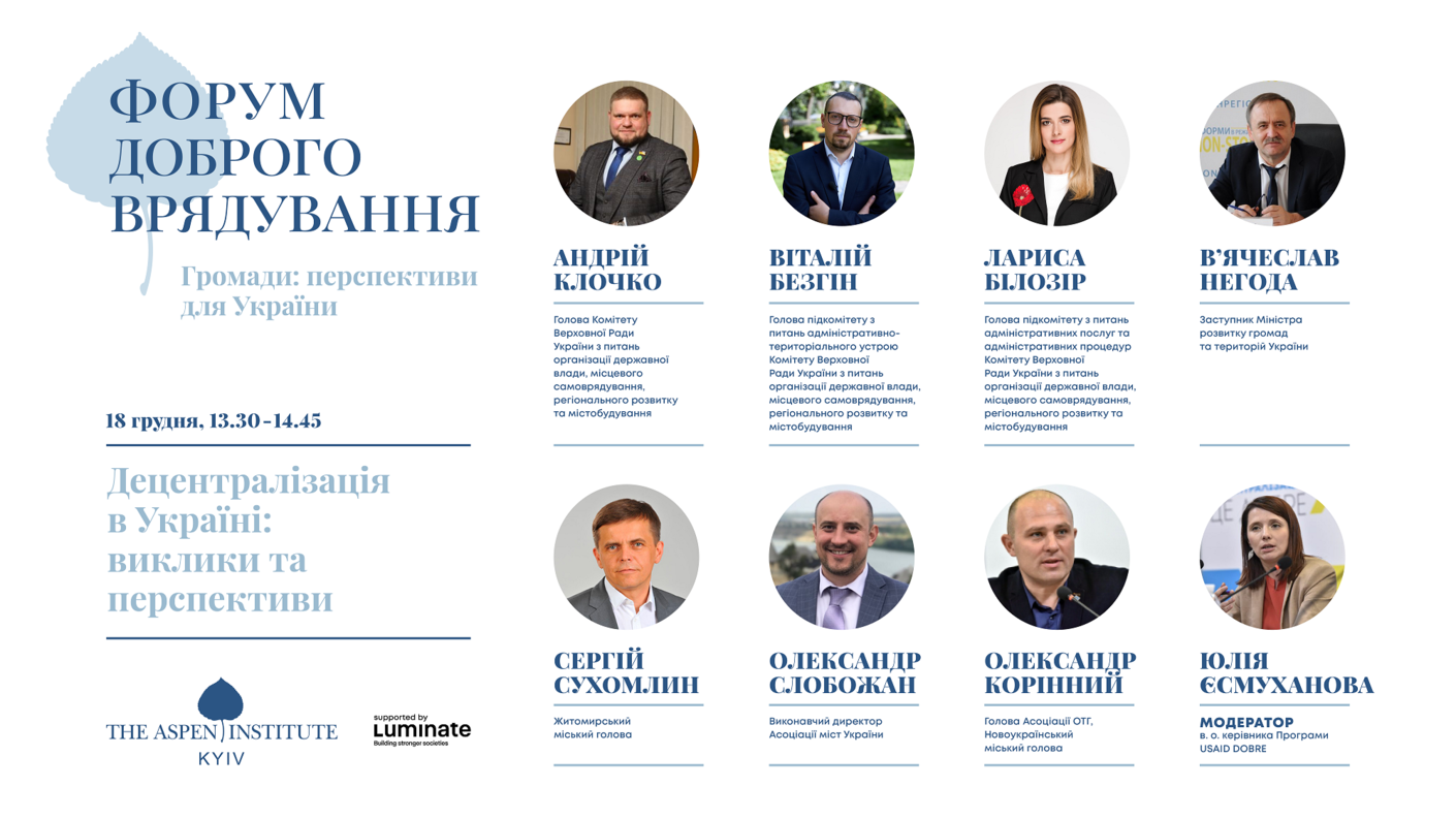 18 грудня відбудеться третій Форум Доброго Врядування, який проведе Аспен Інститут Київ у межах Програми “Добре врядування”. Тема цьогорічного Форму – “Громади: перспективи для України”.