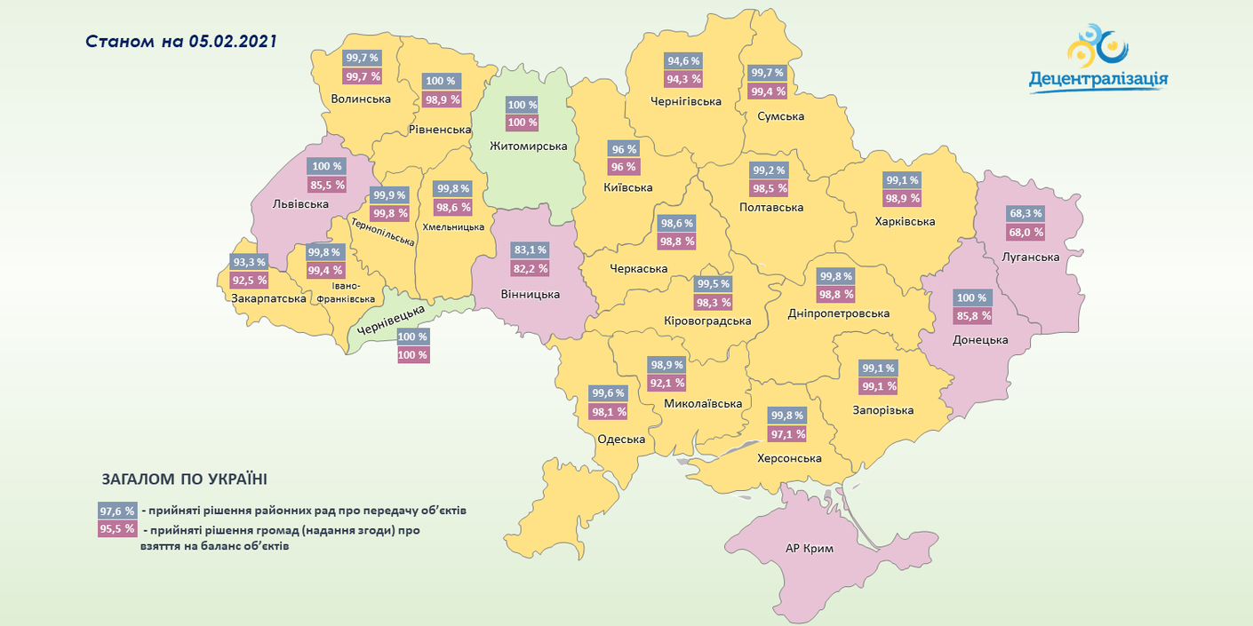 «Загалом по країні процес передачі майна завершується. Але, на жаль, усе ще є сотні об’єктів, які не змогли чи не встигли передати громадам. Ми сподіваємося, що учасники процесу усвідомлюють рівень відповідальності перед законом і перед людьми, і їм вдасться дійти згоди та прийняти правильні рішення уже в найближчі дні», - сказав В’ячеслав Негода.
