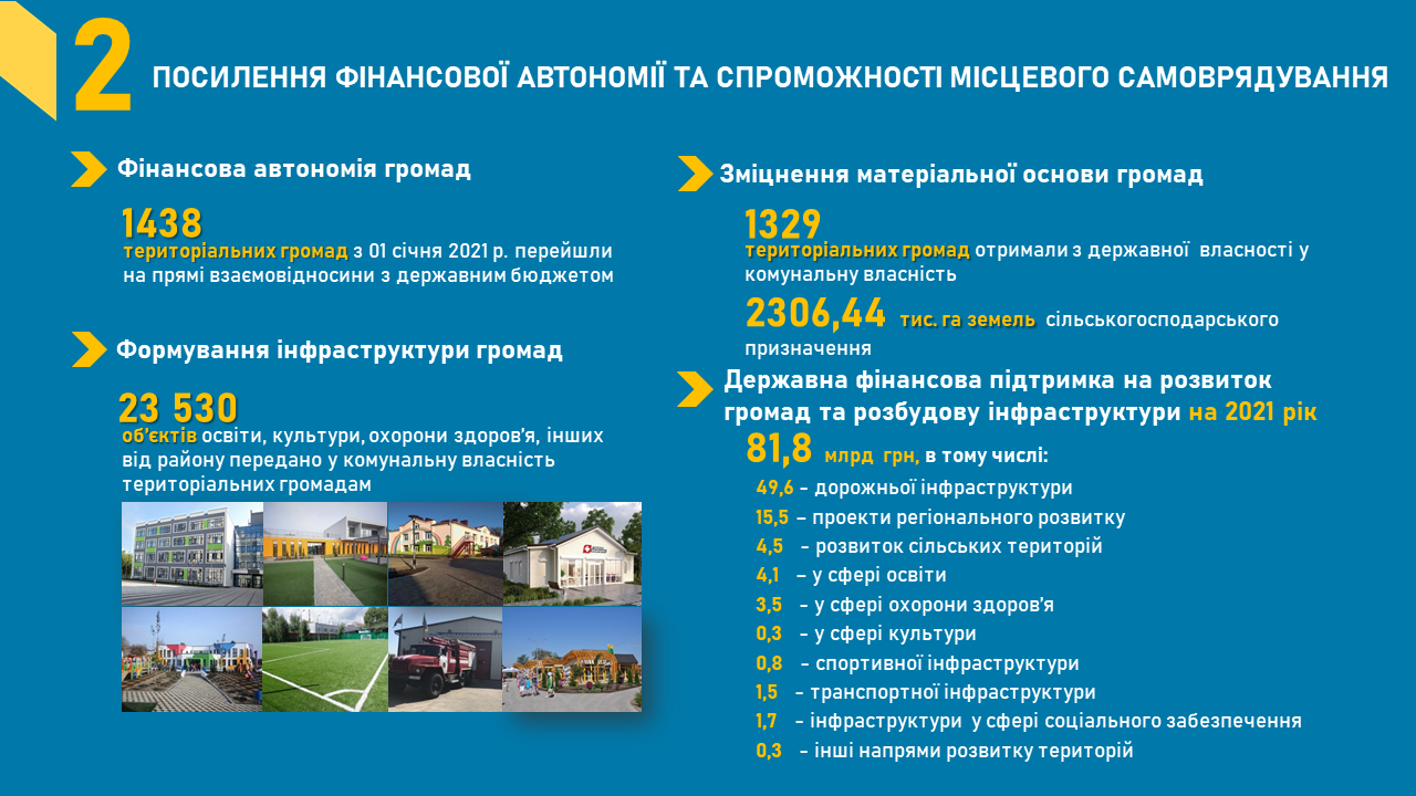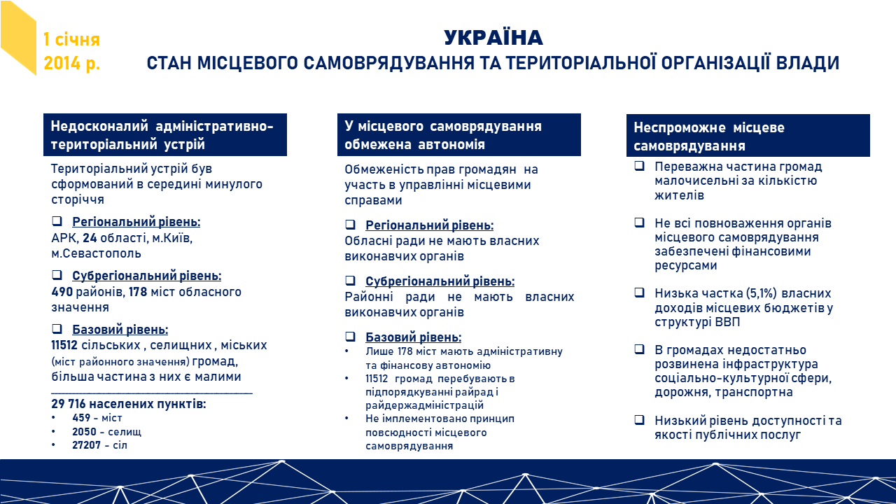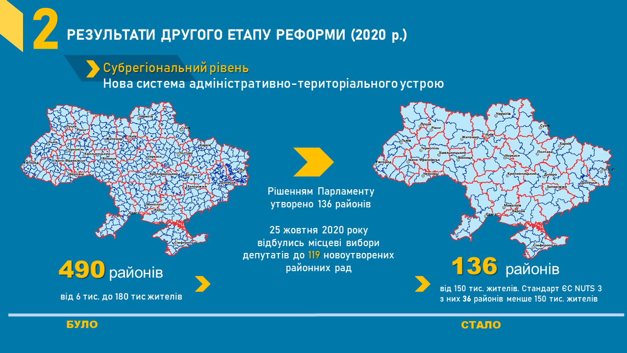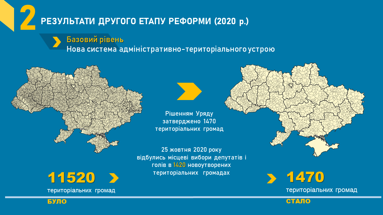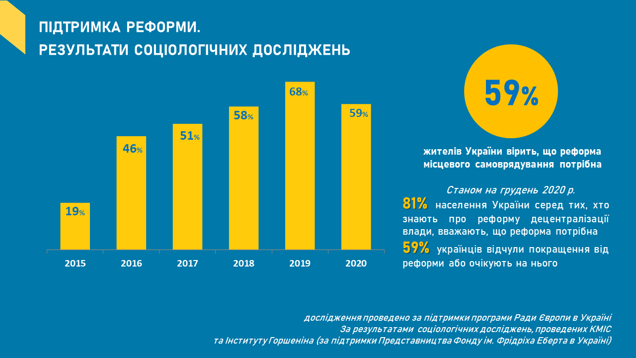 Успіхи реформи місцевого самоврядування та територіальної організації вдали, яких вдалося досягти за минулі роки, беззаперечні. Це підтверджує і підтримка децентралізації жителями громад, і висока оцінка результатів міжнародними партнерами. Але однозначно говорити про те, як закінчиться реформа, зарано, бо багато чого залежить від рішень по змінах до Конституції, від прийняття Муніципального кодексу, від того, як майбутні рішення будуть імплементовані на усіх рівнях.