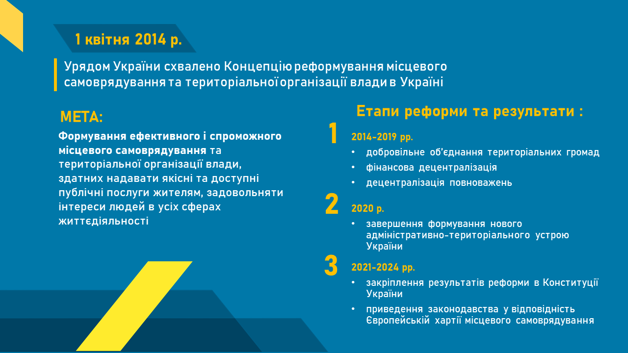 Кабінет Міністрів України ухвалив документ «Особливості реалізації Концепції реформування місцевого самоврядування та...