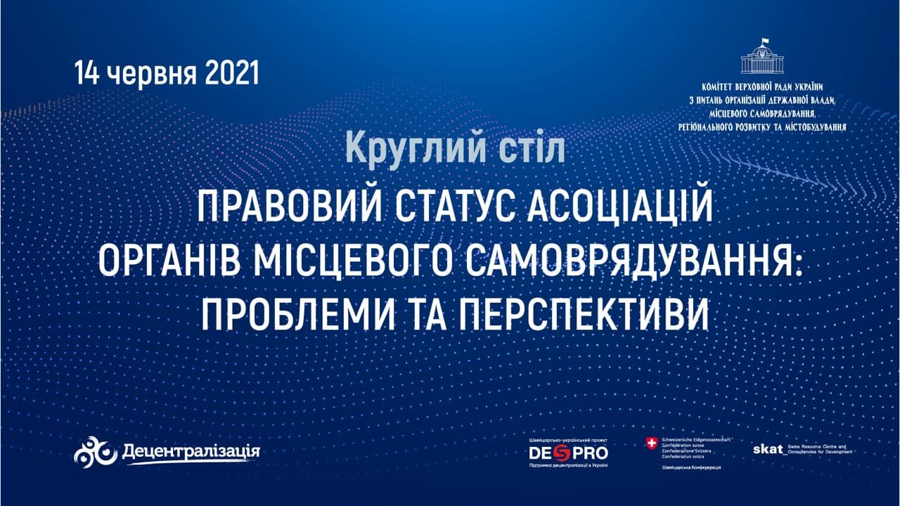 14 червня - круглий стіл "Правовий статус асоціацій органів місцевого самоврядування: проблеми та перспективи"