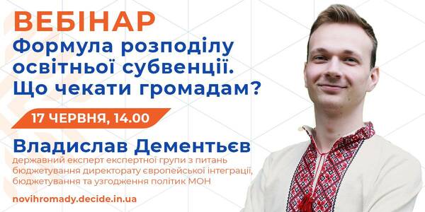 17 червня 2021 року швейцарсько-український проєкт DECIDE – “Децентралізація для розвитку демократичної освіти” проведе вебінар на тему “Формула розподілу освітньої субвенції. Що чекати громадам?”.