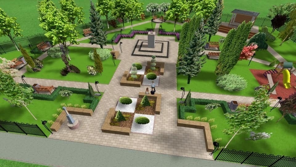 Хлопці та дівчата очистили територію від старих дерев, завезли більше 30 КамАЗів ґрунту, виставили бруківку, встановили нову огорожу, висадили понад 70 саджанців нових дерев та рослин, посіяли газонну траву, встановили сучасні лавки та ліхтарі.