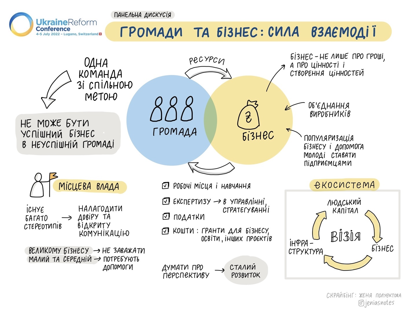 Під час конференції “На шляху до Лугано: Децентралізація”, що проходила сьогодні в Києві, представники громад і місцеві підприємці говорили про важливість співпраці влади та бізнесу.