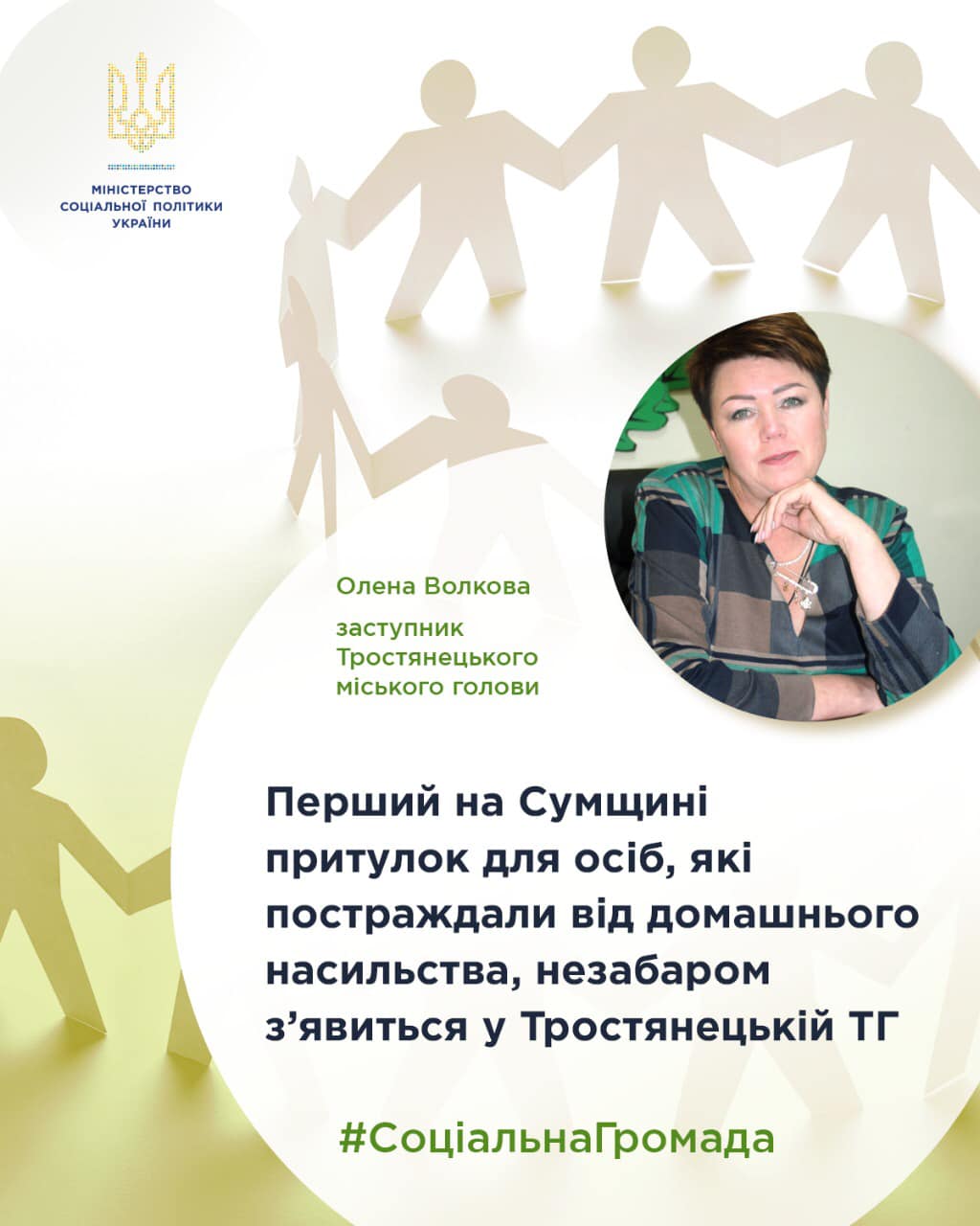 Перший на Сумщині притулок для осіб, які постраждали від домашнього насильства, на початку наступного року з’явиться у складі Центру надання соціальних послуг Тростянецької міської ради. Він розміститься в приміщенні колишнього закладу охорони здоров'я, в якому наразі проводяться роботи з реконструкції, повідомляють у Міністерстві соціальної політики України.