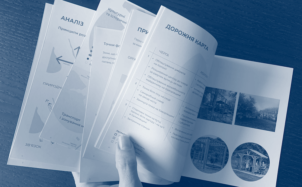 Тарас Елиїв приносить публікацію – це дослідження громадських просторів Копичинець, яке розробила урбан-агенція Zvidsy. Видно, що його читають – папір на кутиках потертий і потемнілий. В Копичинцях є люди, яким цікаво міркувати, як покращити своє місто.