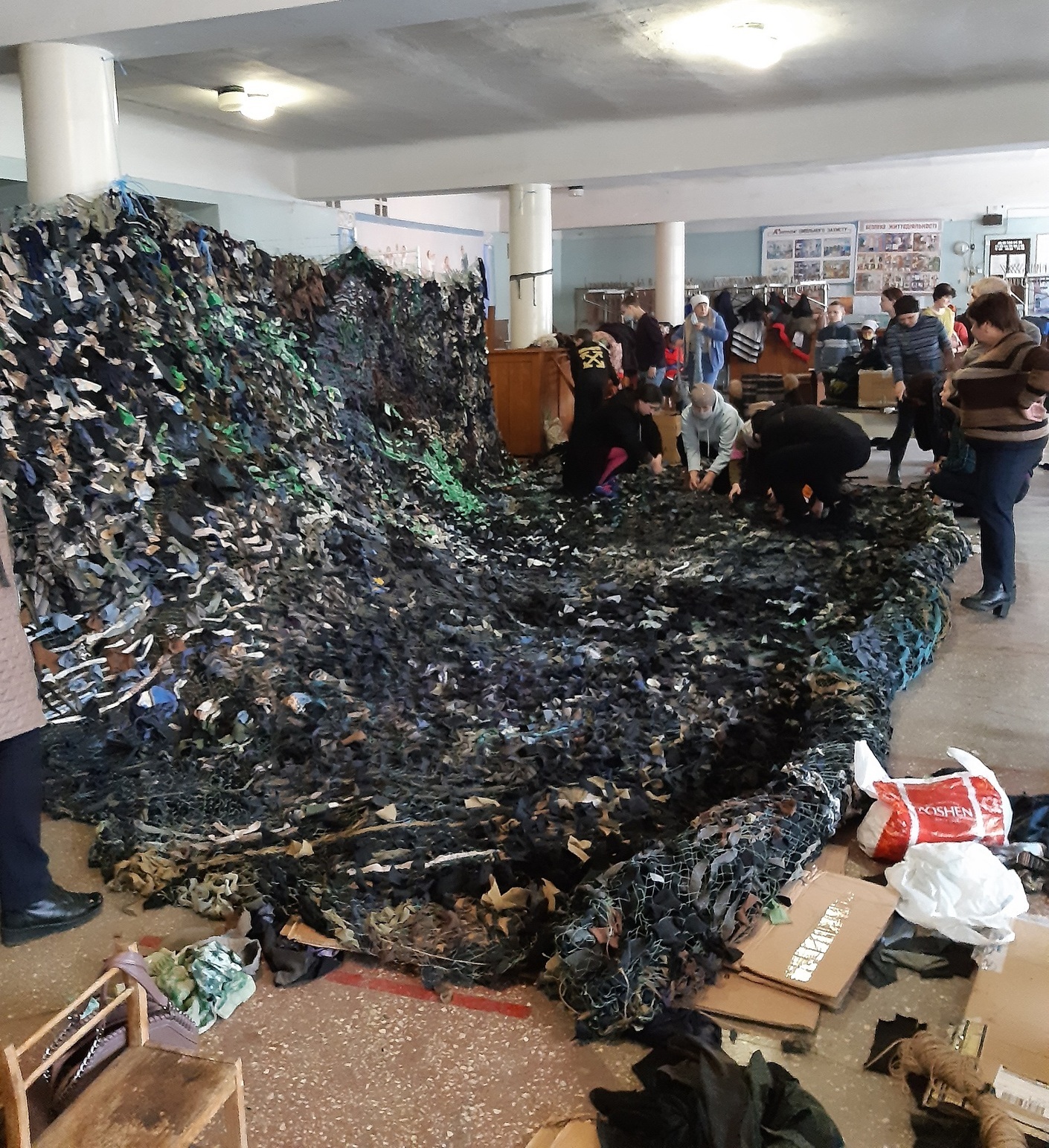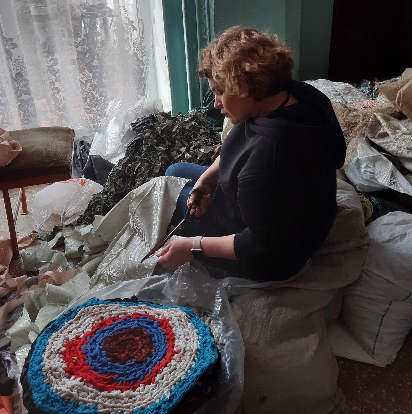 «У батальйон «мобілізували» жінок, які хочуть і можуть передати свої вміння для спільної справи. Зв’язок тримаємо через месенджери, там обговорюємо ідеї та допомагаємо одна одній з матеріалами та необхідним обладнанням. Окрім сіток, шкарпеток, дівчата подали ідею плести килимки-сідушки для наших воїнів. Ідея виявилася корисною, швидко виготовили крючки, провели майстер-класи і до роботи. Для килимків використовуємо старі джинси, зроблені з цупкого та натурального матеріалу. Дівчата, які працюють у швейному цеху з перших днів війни, строчать на машинках так потужно, як і працюють кулемети на передовій. Усі наші вироби – це обереги, які ми дуже сподіваємося захистять та збережуть життя наших воїнів. І якби сьогодні можна було скласти усі наші сітки до купи, то ми б накрили ними всю нашу область», – щиро зізнається волонтерка.