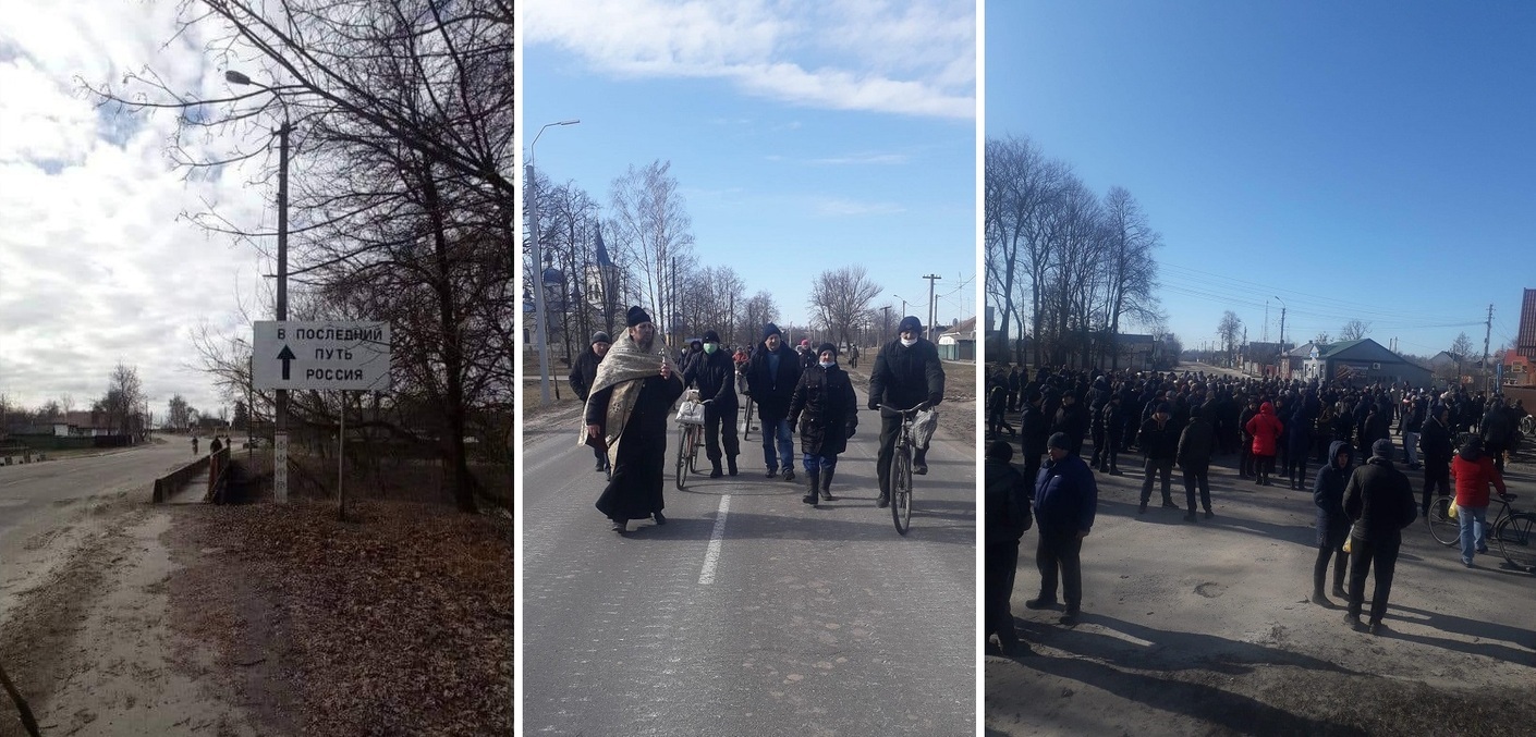 Журналістка уточнила, що особливо активними були жінки, чоловіки говорили з командиром. Російські військові розвернулися. Крім цього, делегація на чолі з місцевим священником отцем Володимиром ходила на ворожий блокпост, щоб закликати росіян забиратися геть з української землі. Демонстрували свою проукраїнську позицію і мешканці Добрянської громади, де є прикордонний пішохідний перехід із сусідньою Білоруссю. Представники громади на чолі з головою Світланою Бицько вийшли до прикордонної території з українськими прапорами, співали гімн України і висловлювали свою позицію, що ані російським, ані білоруським військовим тут не місце.