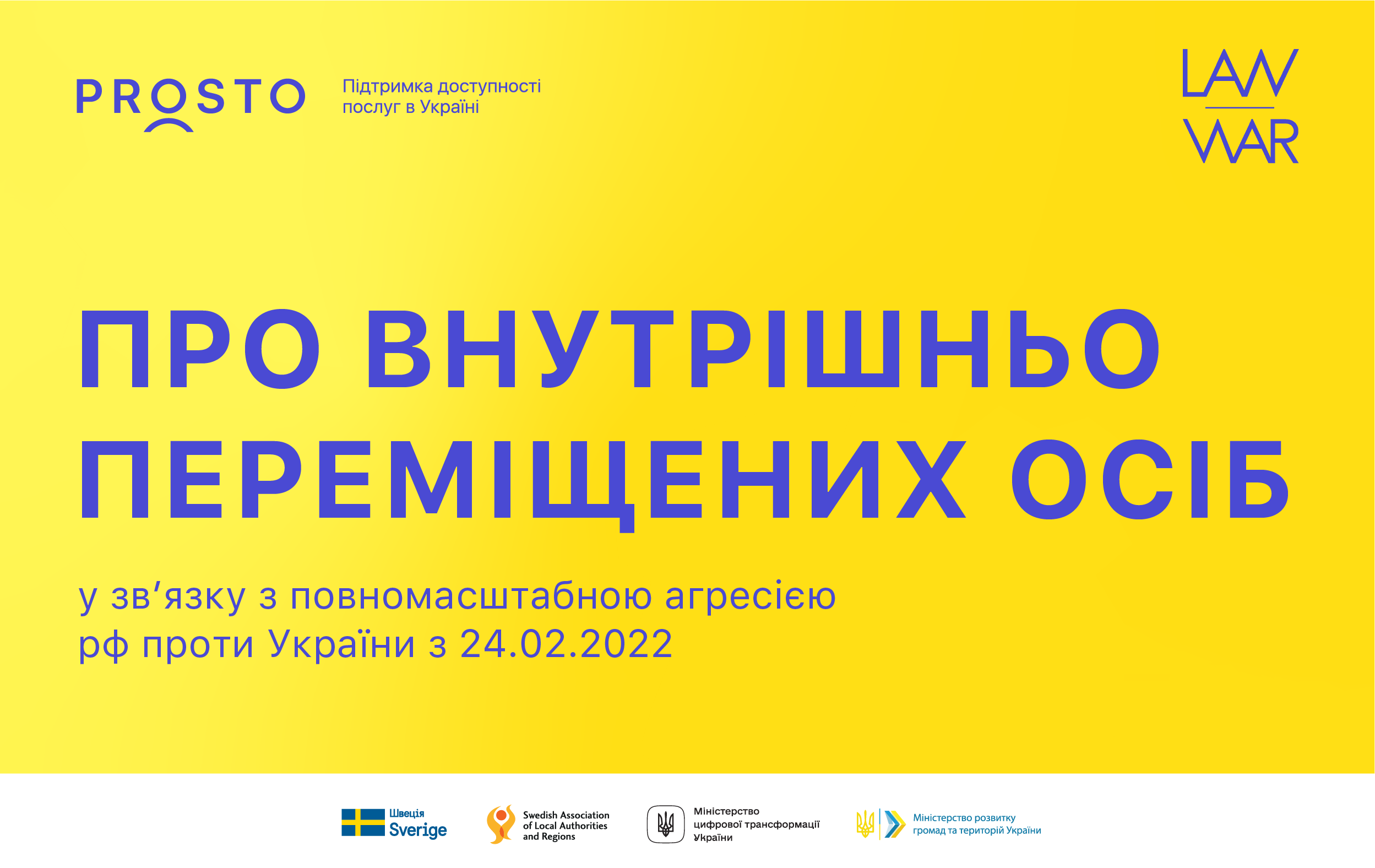 Експерти ініціативи «Право в умовах війни» та шведсько-українського проекту PROSTО «Підтримка доступності послуг в Україні» розробили комплексний документ, який описує всі аспекти роботи з внутрішньо переміщеними особами (ВПО) відповідно до останніх змін у законодавстві.