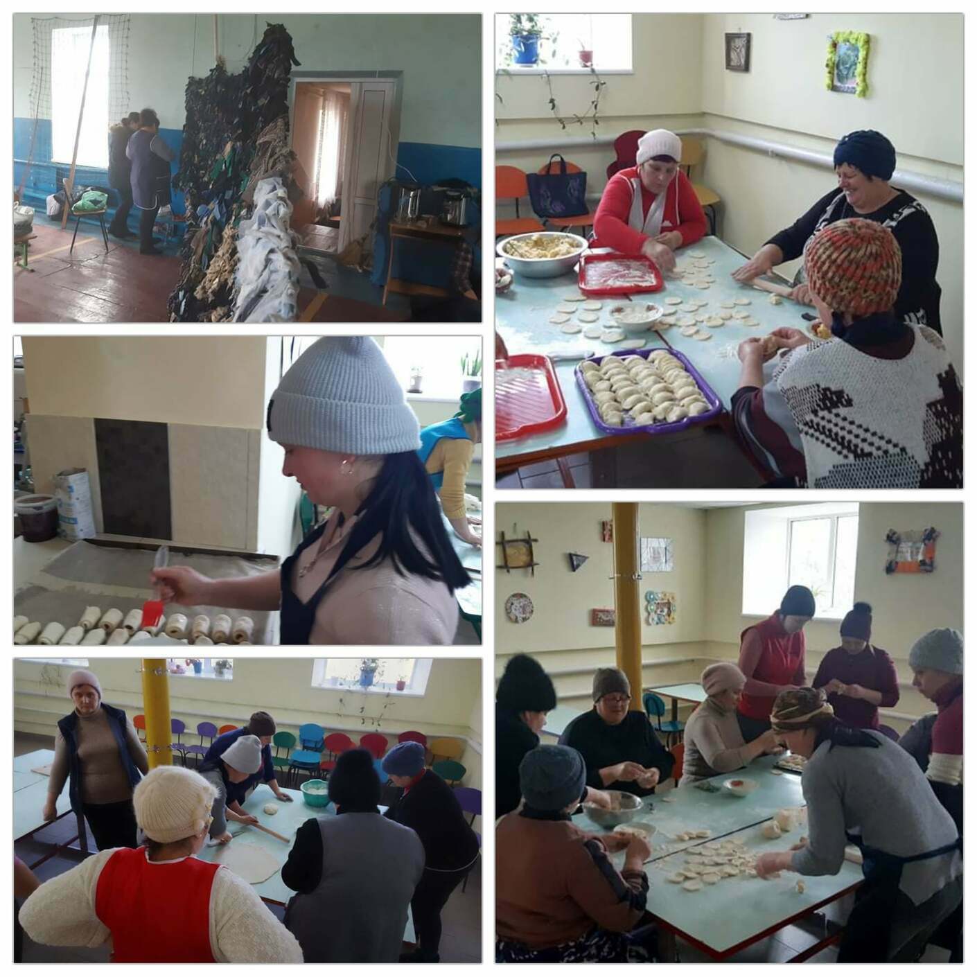 Також у громаді постійно допомагають захисникам. У швейному цеху шиють балаклави, спідню чоловічу білизну, деталі для розгрузок. Нещодавно, коли почало дощити, отримали запит від захисників на дощовики. Майстрині знайшли зразок військового «дощовику», розпороли і на його основі побудували викрійки та виготовили «сигнальний варіант». Після внесених правок та примірок, відшивають необхідну кількість плащів. У цеху постійно працюють від 10 до 12 жінок. Педагогам, вихователям та працівницям позашкілля допомагають переселенці та охочі мешканці громади.
