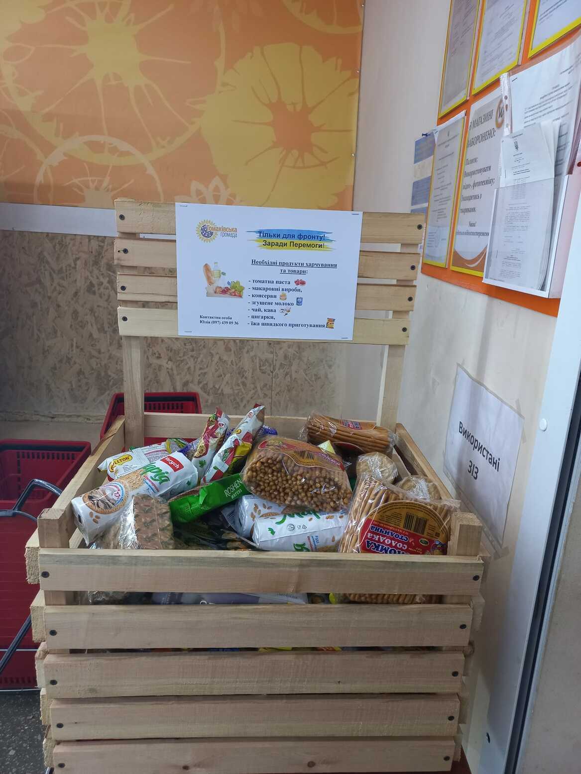 Нещодавно у торгових мережах Томаківської громади з'явились благодійні кошики. Всі бажаючі можуть зробити свій вклад в перемогу: залишити у скрині продукти, побутову хімію, ліки, господарчі товари, які потім будуть передані захисникам.