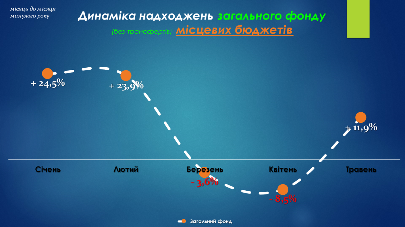 Розглядаючи динаміку доходів місцевих бюджетів помісячно, прослідковується, що в квітні було дно зниження темпів приросту надходжень загального фонду місцевих бюджетів і вже в травні почалося пожвавлення.