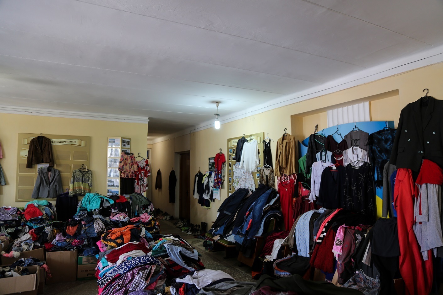 Потім у громаду почала надходити гуманітарна допомога від уродженців громади, які живуть за кордоном. Так у громаді почав працювати гуманітарний центр. Частину роздають ВПО, які оселилися в громаді. Коли приходять дитячі набори та памперси - роздають усім, хто потребує. Гуманітарною допомогою діляться і з іншими громадами, зокрема з прифронтових територій.