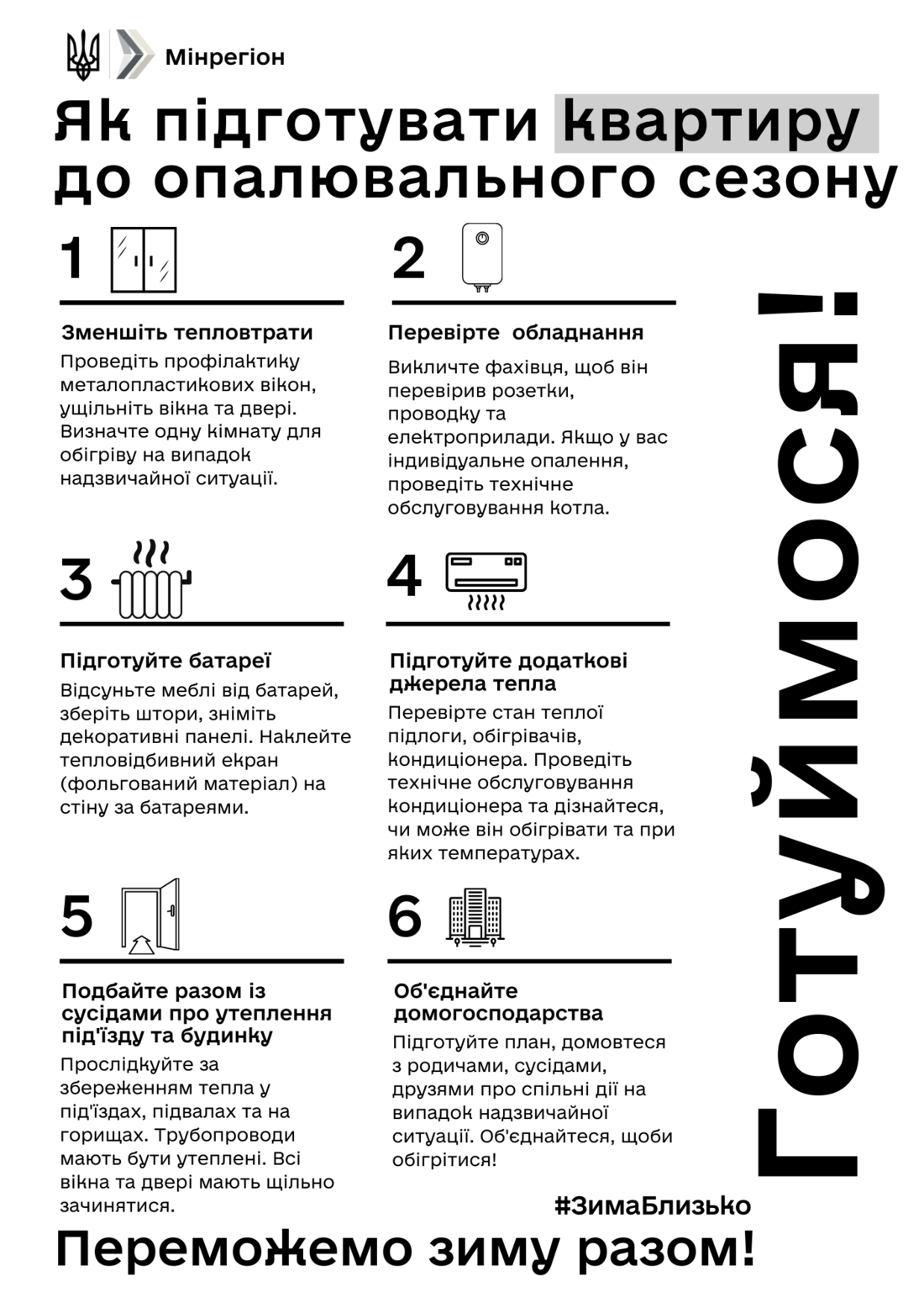 Міністерство розвитку громад та територій України розпочало комунікаційну кампанію «Готуймося!», спрямовану на спонукання громадян індивідуально готуватися до опалювального сезону.