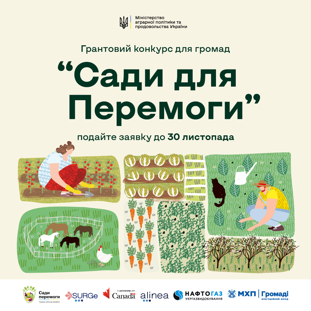 Ініціатива «Сади Перемоги» запускає грантовий конкурс для українських громад на реалізацію ідей з розвитку сільського господарства та самозабезпечення продуктами харчування. Переможці конкурсу отримають до 250 тис. грн на втілення свого проекту.