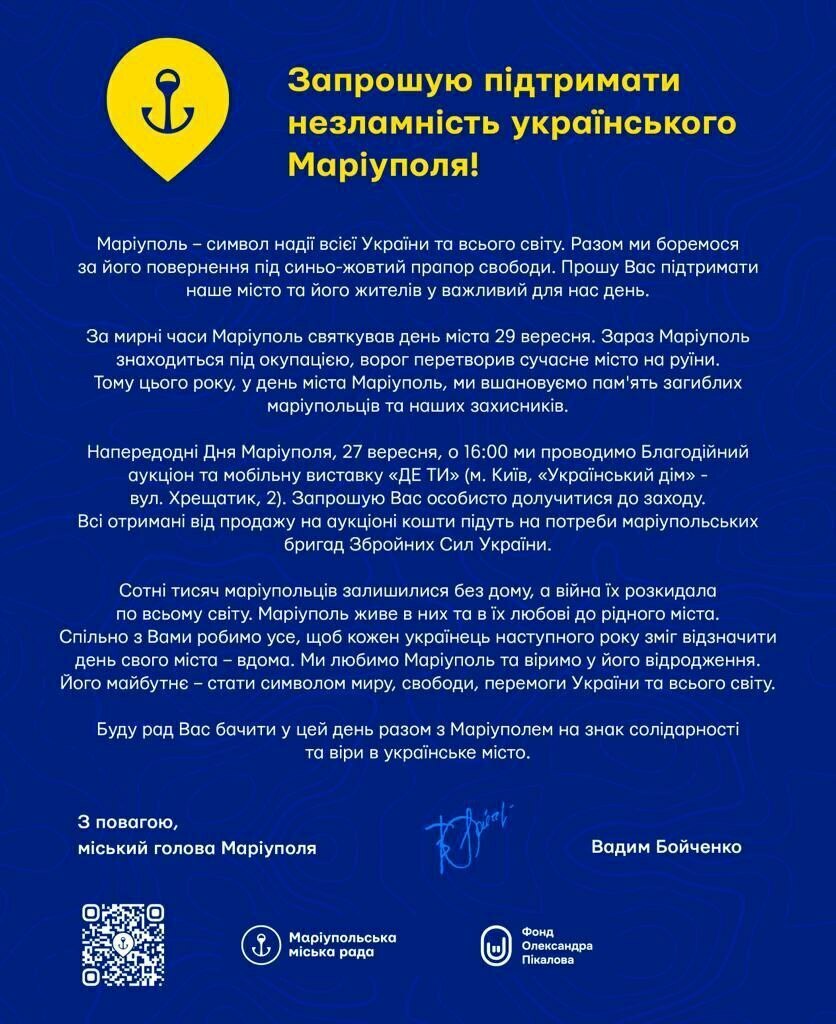 Міський голова Маріуполя Вадим Бойченко запрошує усіх, хто має можливість, особисто долучитися до заходу.