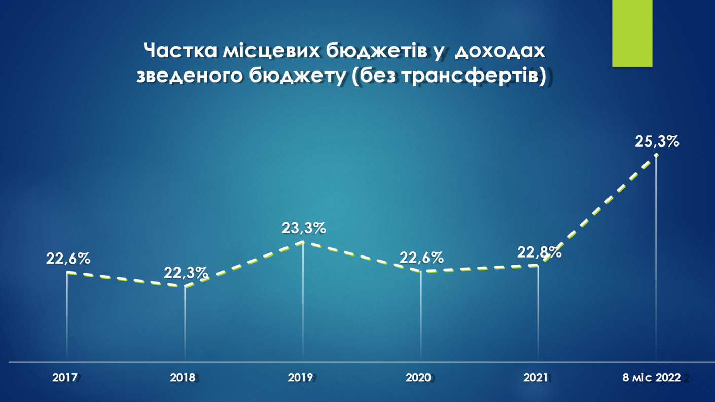 Варто відмітити, що за 8 місяців 2022 року значно зросла частка місцевих бюджетів у доходах зведеного бюджету.
