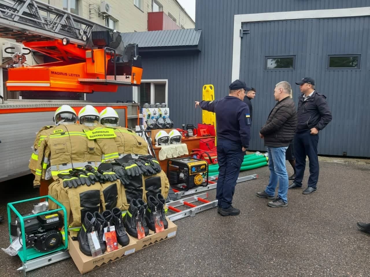 Пожежне спорядження, отримане Золотоніською громадою восени 2022 року - комплекти одягу, взуття, рукавиці, каски, генератор, драбина тощо - спрямоване Фондом міжнародної солідарності до громади в рамках проєкту, що імплементується у співпраці з BGK (Банком крайового господарства) та фінансується ЄС.