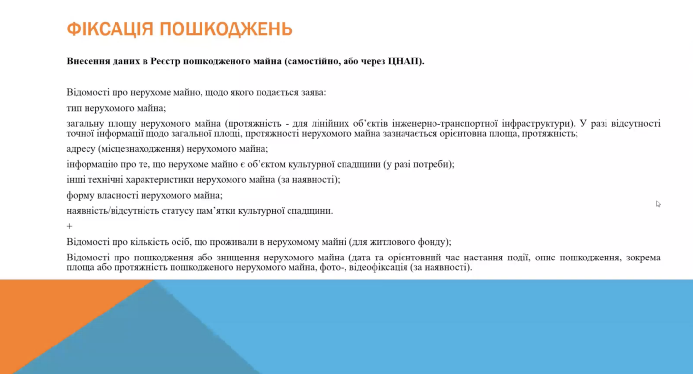 Експертка рекомендує не розраховувати лише на роботу службових осіб у контексті фіксації пошкоджень. Для більшої певності вона радить власникам самостійно здійснити фото- та відеофіксацію пошкоджень. Тут важливо це зробити правильно, щобпотім матеріали могли бути доказами у справі.