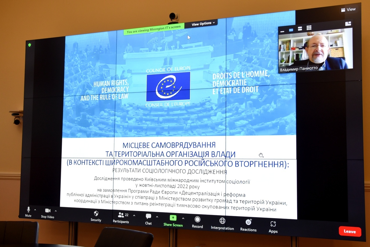 Про це свідчать дані сьомої хвилі всеукраїнського соціологічного дослідження з тематики місцевого самоврядування, проведеного Київським міжнародним інститутом соціології у жовтні-листопаді 2022 року на замовлення Програми Ради Європи «Децентралізація і реформа публічної адміністрації в Україні» у співпраці з Міністерством розвитку громад та територій України та у координації з Міністерством з питань реінтеграції тимчасово окупованих територій.