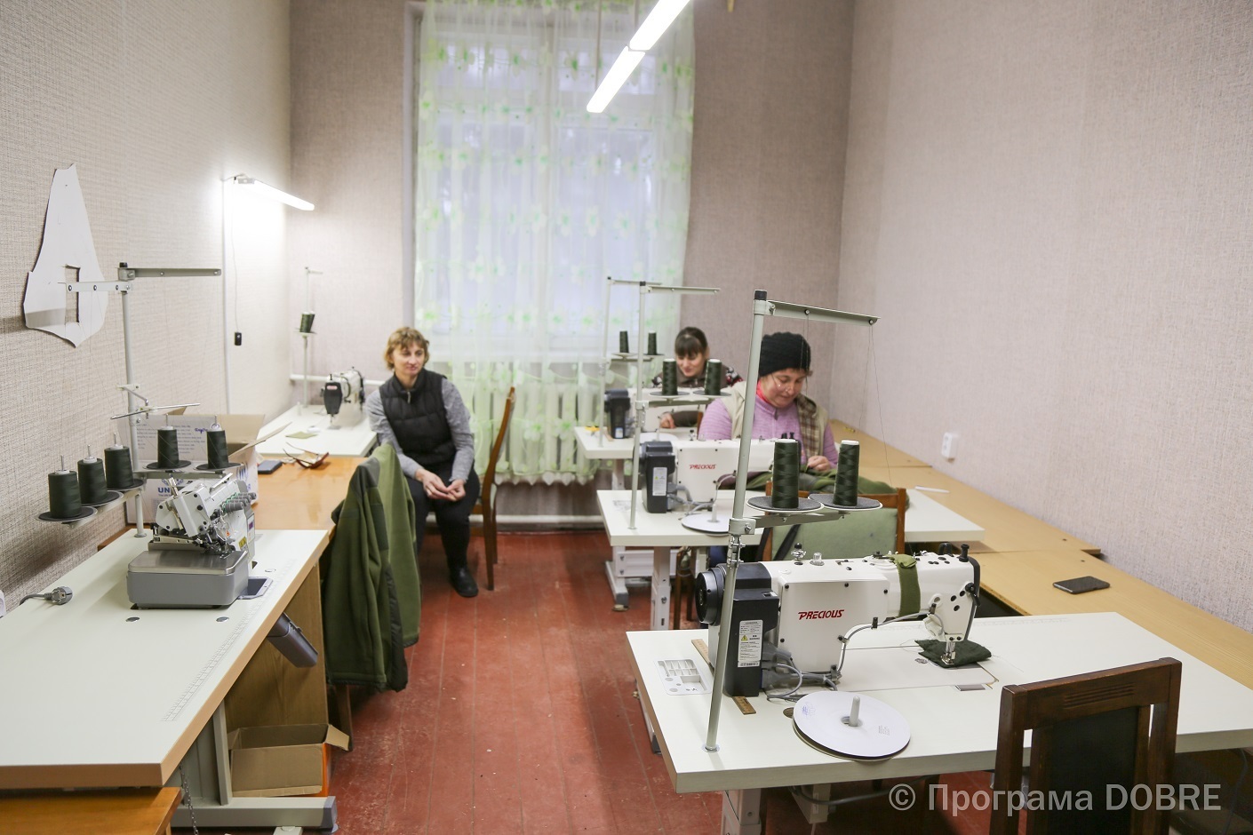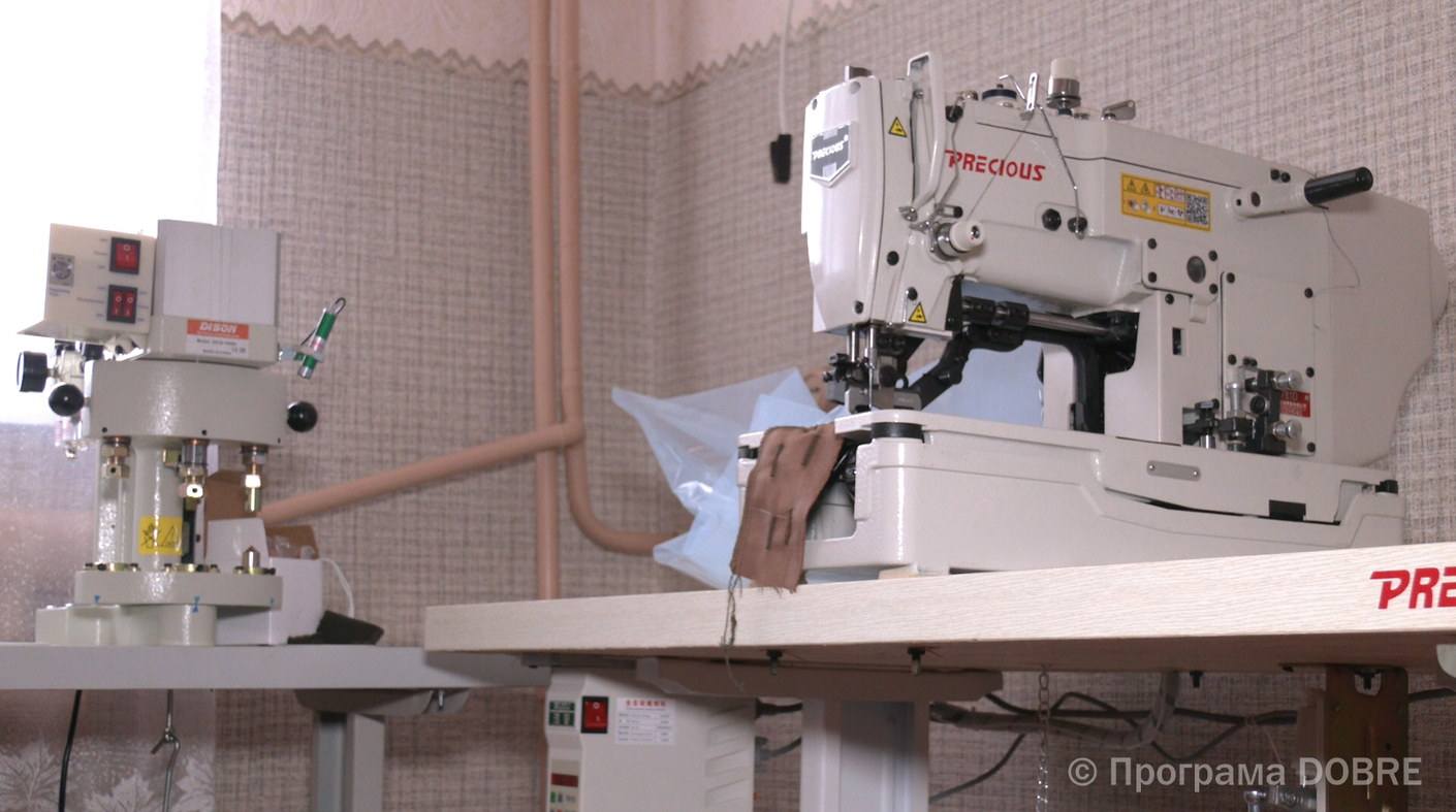 Тут є швейний цех, де розташоване основне обладнання, кімнати для крою та прасування. До речі, розкрійний стіл люди зробили власними силами. Зараз обладнання достатньо для всього процесу виготовлення одягу. Є також додатковий простір - для потенційного розширення, бо попит на цю роботу є.