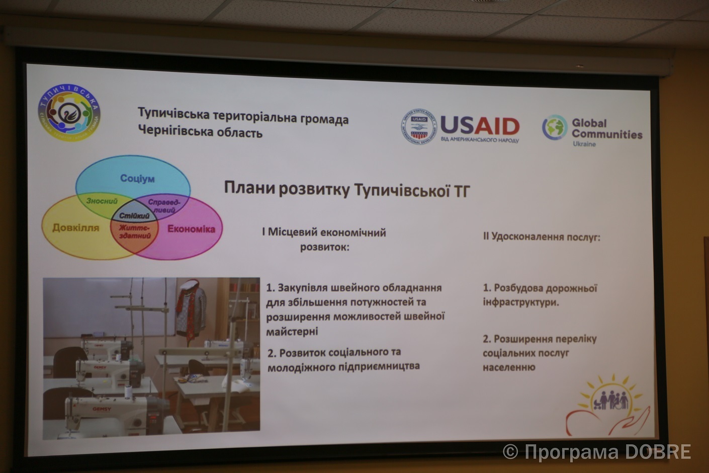 Проєкт швейної майстерні був задуманий як сталий проєкт, який сприятиме місцевому економічному розвитку громади та забезпечуватиме робочі місця. Завдяки гнучкості й спроможності самоврядування під час викликів війни та співпраці з міжнародним партнером - проєкт успішно запрацював. На відкриття в громаду приїхав Тревіс Гартнер, директор представництва Глобал Ком’юнітіз в Україні та представники Програми USAID DOBRE.