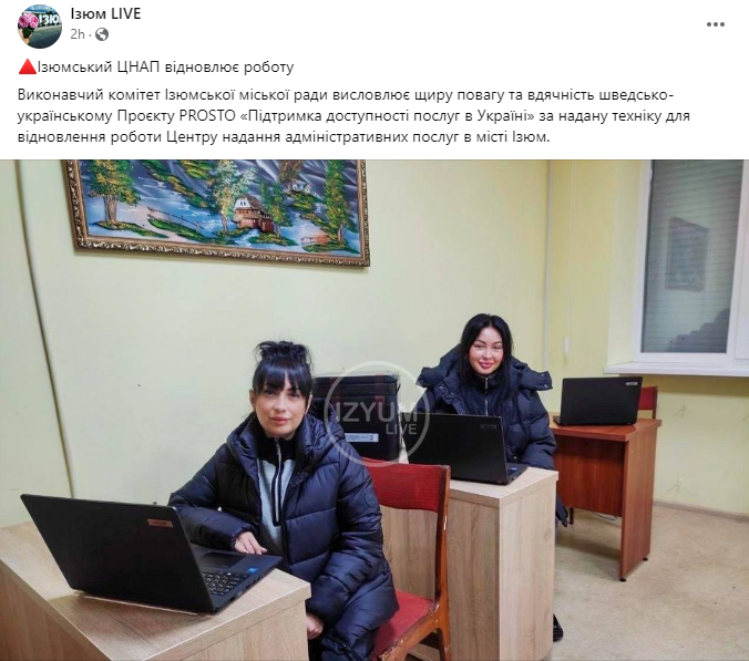 Завдяки підтримці PROSTO ЦНАП Ізюмської громади вже відновив свою роботу.