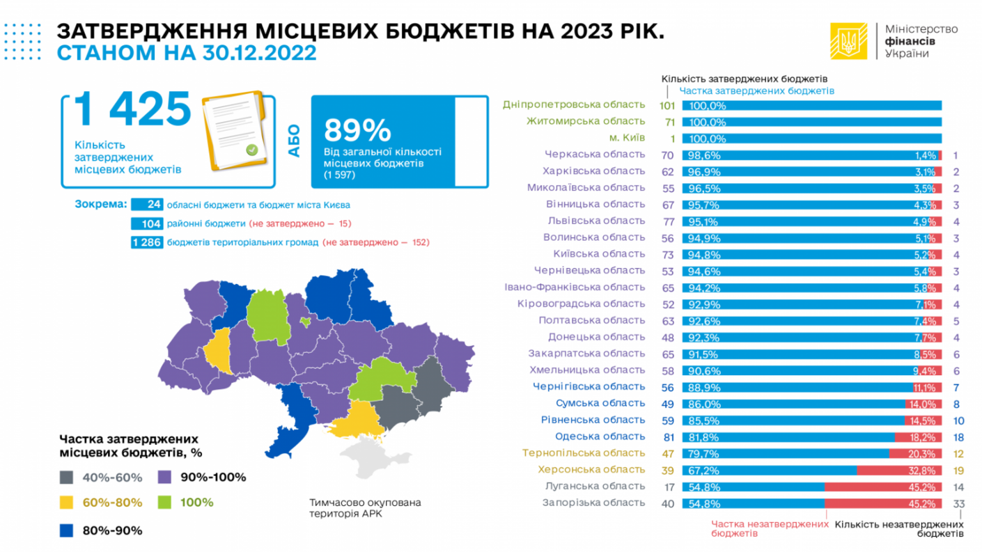 Загалом прийняті 1425 місцевих бюджетів, що становить 89% від загальної кількості (1597).