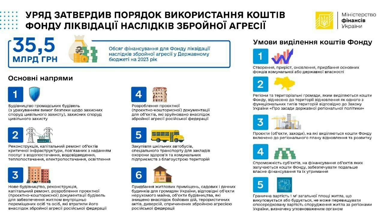 Нагадаємо, у Державному бюджеті України на 2023 Фонд ліквідації наслідків збройної агресії складає 35,5 млрд гривень.
