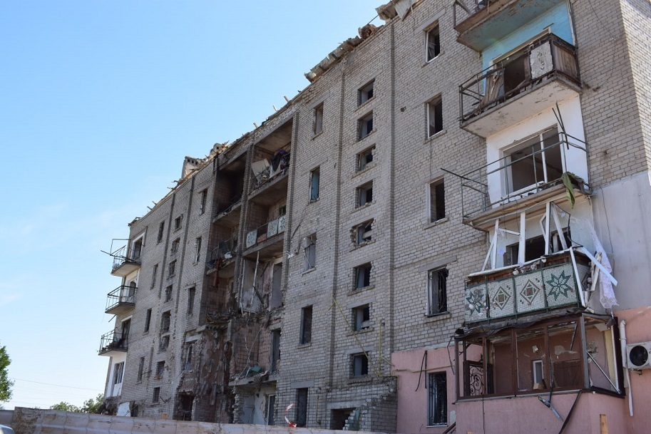 - Цілячись, вочевидь, по цих горезвісних складах, росіяни влучили «Іскандером» у п’ятиповерхівку поруч. І хоча приліт був за 2 метри від під'їзду, весь будинок став непридатним до проживання. А у 24-х з його 26-ти квартир цього під’їзду жили пенсіонери та інваліди. Диво, що ніхто з них не загинув, хоча поранені були. Міська влада надала всю необхідну допомогу постраждалим та і підтримує їх досі. З міського бюджету було виділено 2 мільйони гривень для надання матеріальної допомоги жителям, житло яких зазнало пошкоджень внаслідок російської агресії. Також, на жаль, батько і син загинули від протитанкової міни, на яку наїхали автомобілем, об'їжджаючи гілку на дорозі. Загалом у Вознесенську внаслідок бойових дій було пошкоджено близько 700 будинків, з них 56 – багатоповерхівки. Ступень пошкоджень різний: від вибитих шибок до повної, до фундаменту, руйнації.