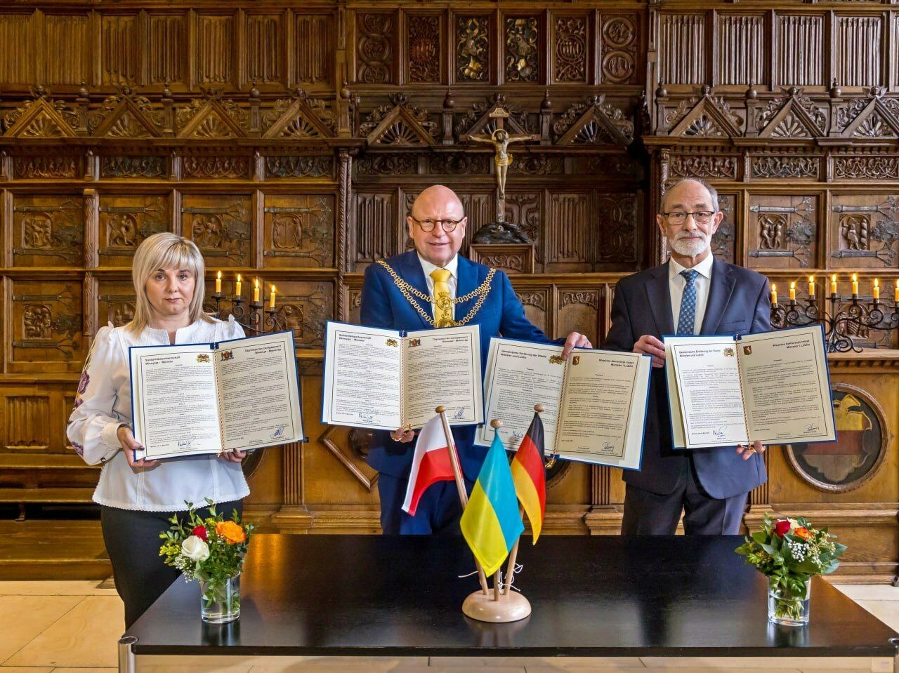 «Наш офіційно закріплений тристоронній альянс українського, польського та німецького міст є сильним знаком того, що Європа тримається разом у важкі часи. Головною метою партнерства залишається надання адресної допомоги та виходячи з потреб людей, які постраждали від війни. Однак, ми в Мюнстері, не тільки надаємо допомогу, але й багато чому вчимося в українців, коли бачимо, як вражаюче вони справляються з нинішньою ситуацією», – пояснив лорд-мер Мюнстера Маркус Леве.