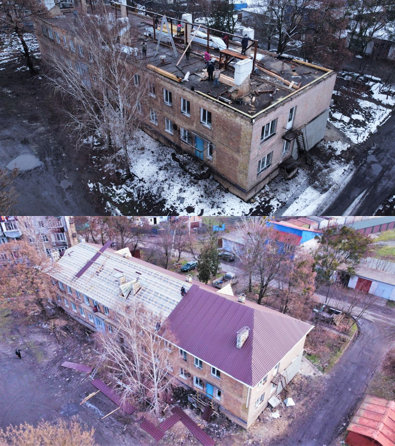 Допомога пошкодженим будинкам не обмежується приватними домогосподарствами. Допомогу отримають також мешканці багатоповерхівок, які були пошкоджені внаслідок ворожих обстрілів та бомбувань. Вже заплановано роботи по відновленню 7-х багатоквартирних будинків, у яких загалом мешкають 935 осіб, ще кілька будинків - попереду.