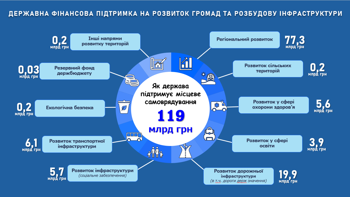 Всі ці фінансові ресурси держава спрямовує на місцевий рівень, щоб створити умови для динамічного та збалансованого розвитку територій.