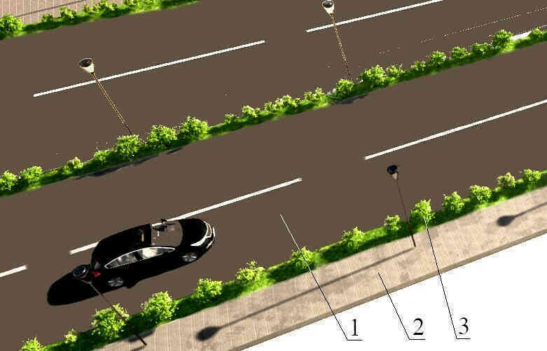 1 – проїзжа частина; 2 – тротуар; 3 – дощовий сад-смуга