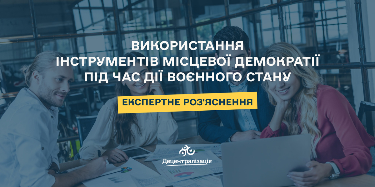 Загалом, під час дії воєнного стану, введеного відповідно до Закону №389, участь жителів територіальних громад у вирішенні питань місцевого значення не зупиняється. Однак, використання деяких інструментів місцевої демократії може бути ускладнене із зазначених об’єктивних причин або тимчасово обмеженим.