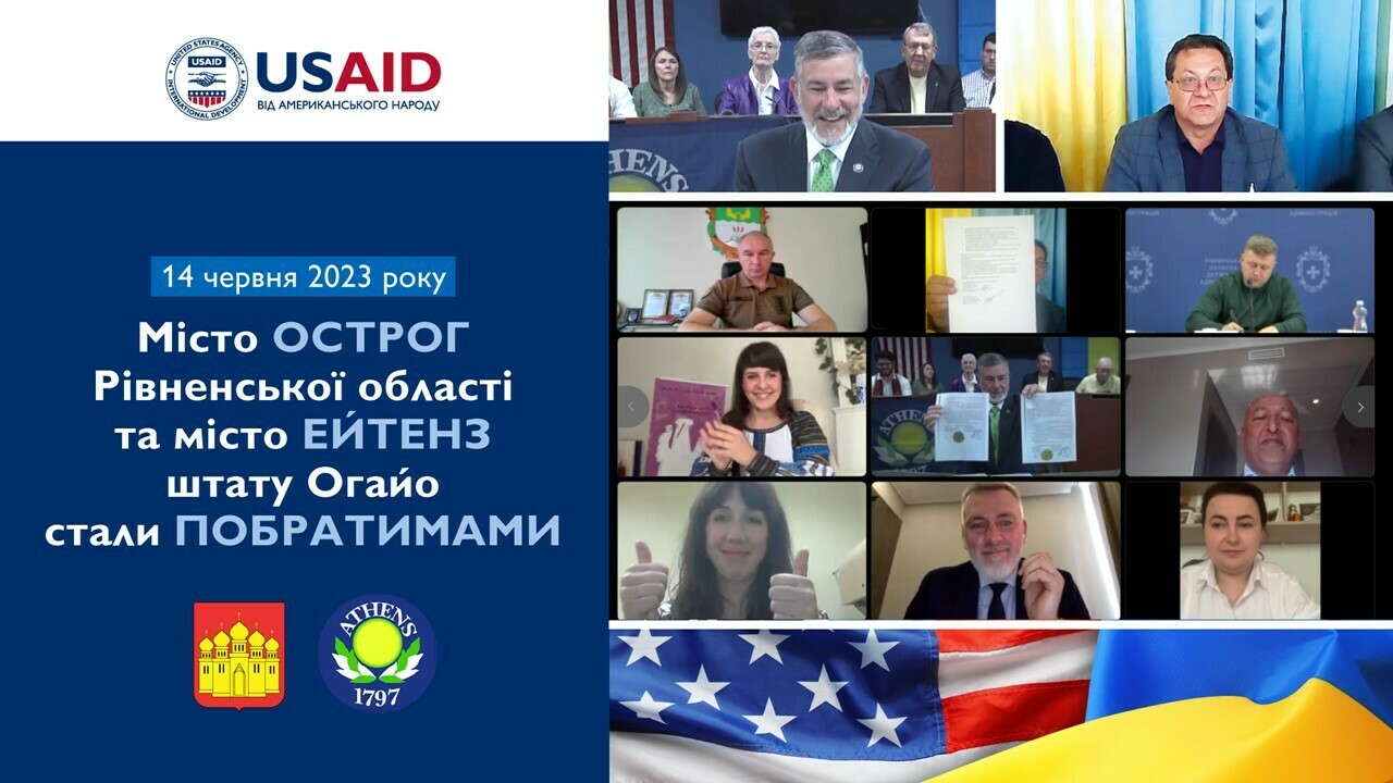 14 червня відбулося підписання історичної Угоди про побратимство між українським містом Острог Рівненської області та американським містом Ейтенз, штат Огайо. Подія стала важливою віхою у розвитку культурного обміну, передачі знань та економічної співпраці між громадами двох міст. Важливу роль у налагодженні партнерства зіграла підтримка Проєкту USAID «ГОВЕРЛА», що заклала основи для цієї важливої події.