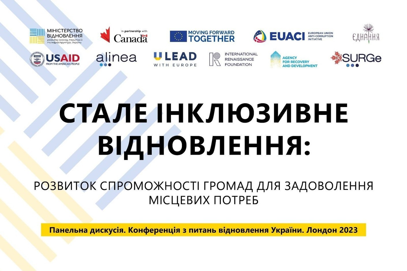 «Стале інклюзивне відновлення: розвиток спроможності громад для задоволення місцевих потреб» – тема важливої панельної дискусії, яка приурочена до Конференції з питань відновлення України 2023 у Лондоні.