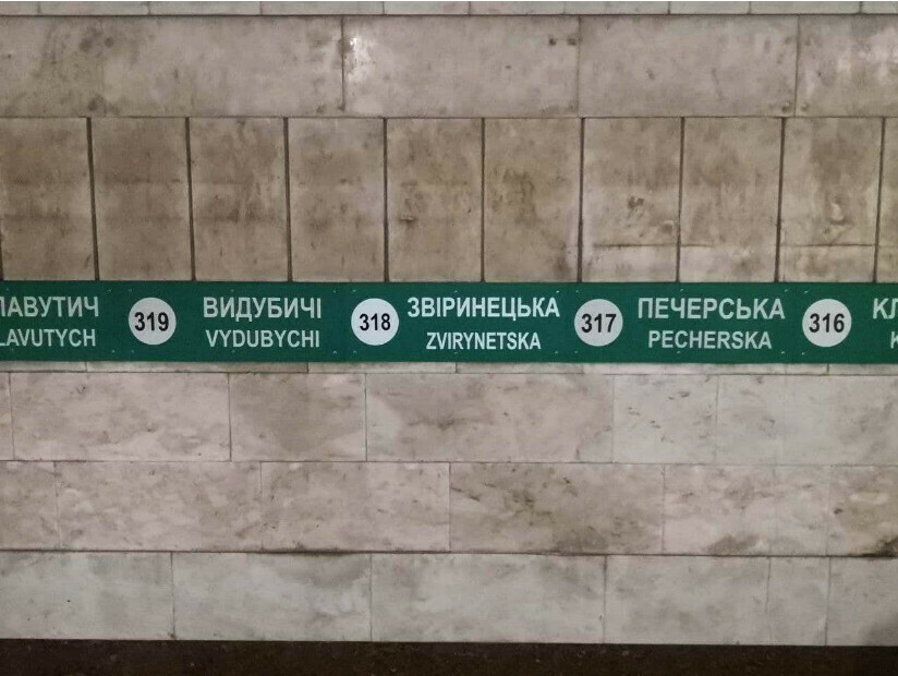 Замінений покажчик, станція метро «Звіринецька» замість «Дружби народів». Джерело: КП «Київський метрополітен»