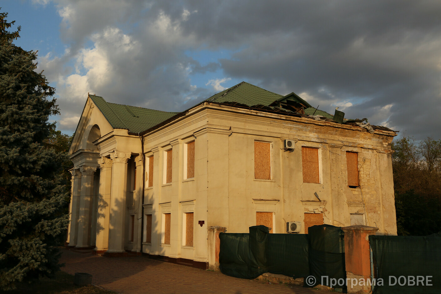 «Громада дуже розраховує на допомогу Програми USAID DOBRE в ремонті покрівлі на міському будинку культури, який двічі піддавався ракетним обстрілам. Ми дуже хочемо зберегти цей заклад культури, адже тут працюють 58 аматорських колективів, 8 народних колективів, зразковий колектив «Славія» та 36 майстрів і художників. Частково громада змогли зробити своїми силами косметичний ремонт, замінити вікна, двері, але сьогодні важливо замінити покрівлю, бо наближається осінньо-зимовий період», – звернулася до представників програми секретар Баштанської міської ради Інна Гомерська.