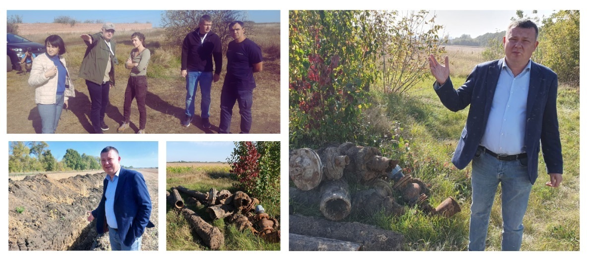 Володимир Вітченко, директор комунального підприємства Вільхівської громади, демонструє залишки елементів старого водогону
