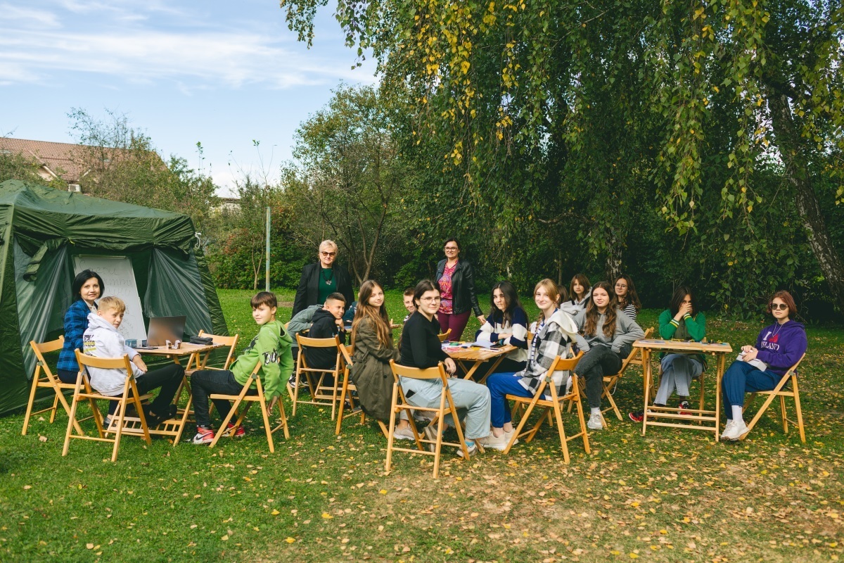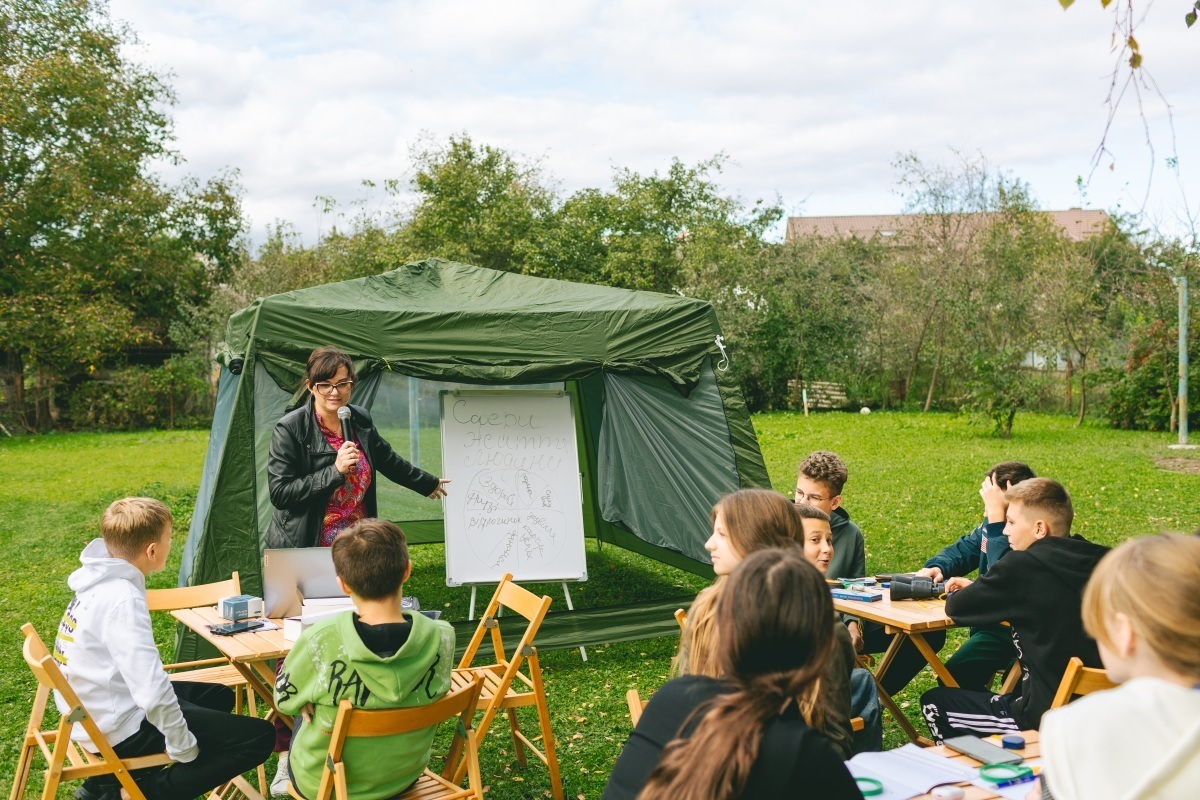 «Основна мета проєкту – забезпечити проведення уроків на свіжому повітрі в різних екосистемах нашого краю: чи то ліс, чи то берег річки, чи навіть природничий музей. Клас дійсно є мобільним, адже меблі та намети розгортаються будь-де всього за 15 хвилин. А ще ми запрошуємо на «виїзні уроки» спеціалістів різних галузей: зоологів, іхтіологів, ботаніків, аби вони детальніше ознайомили дітей із матеріалом шкільної програми», – розповідає Володимир Бучко, батько учениці 10-го класу Бучко Лілії та учасник шкільної команди проєкту.