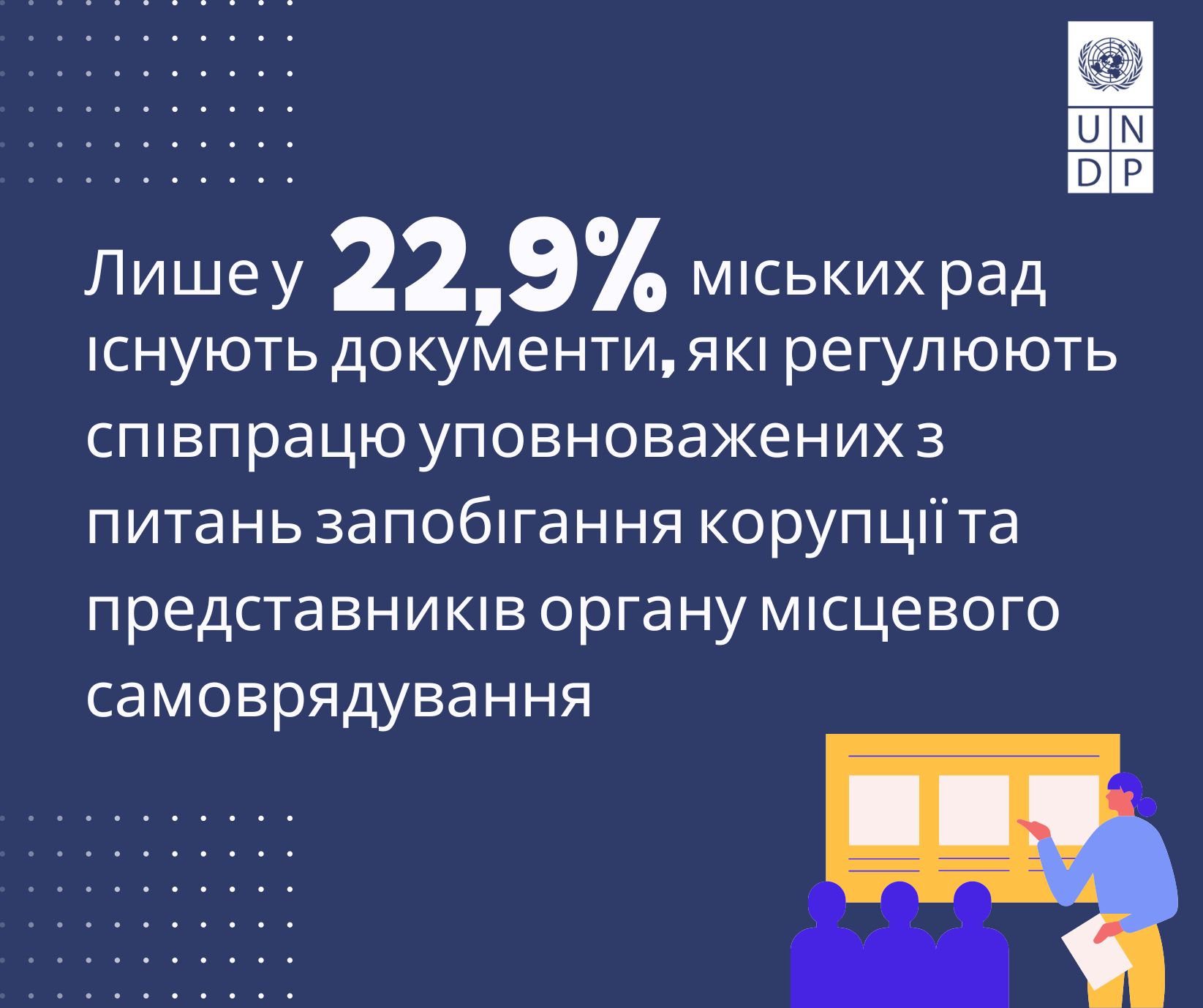 Міністерство розвитку громад, територій та інфраструктури за підтримки UNDP провело аналіз системи функціонування уповноважених підрозділів (осіб) з питань протидії корупції у містах. Загалом в аналізі взяли участь 170 антикорупційних уповноважених з різних міст України. Результати цього опитування стали основою для розробки посібника «Як організувати роботу з питань запобігання корупції в громадах: актуальні проблеми та практичні рекомендації».