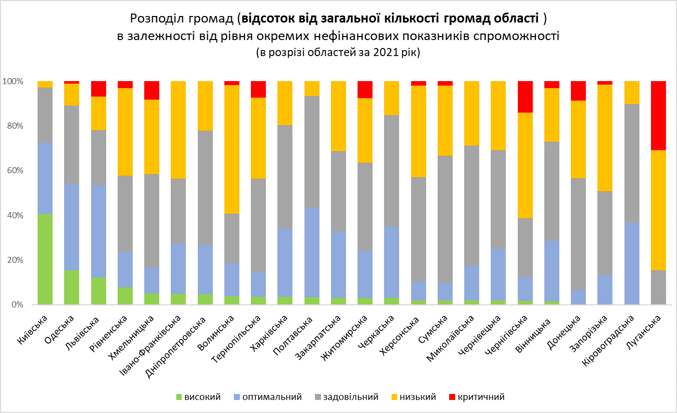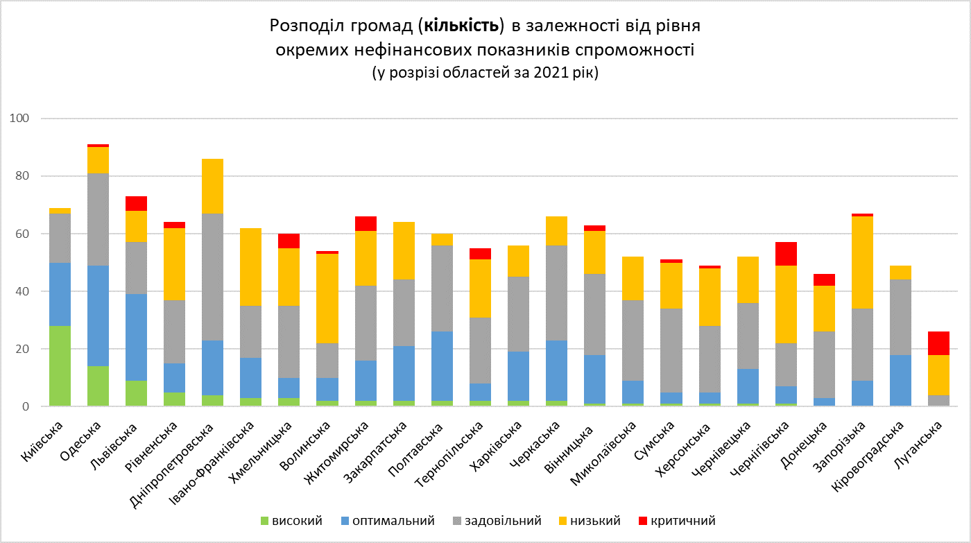 Відповідно до запропонованої методології (на підставі даних за 2021 рік), у 1 квартилі розташовано громади з найкращими значеннями відповідних показників, у 4 квартилі – відповідні значення, які є найнижчими.