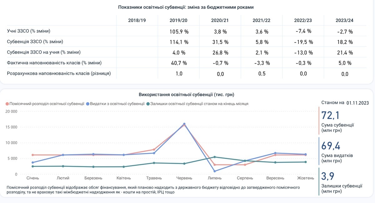 Дашборд пропонує два погляди на українську освіту: