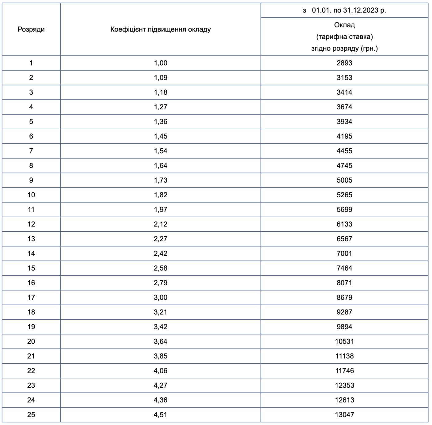 Тарифна сітка поділена на розряди. У кожного розряду є свій коефіцієнт підвищення окладу. Сума посадового окладу визначається за допомогою множення коефіцієнта на суму мінімальної тарифної ставки (2893 грн). У Радянському Союзі ця система охоплювала всіх працівників усіх фахів. Мені здається, що зараз у єдиній тарифній сітці в Україні залишилися лише вчителі, викладачі та адміністративний персонал на різних рівнях.