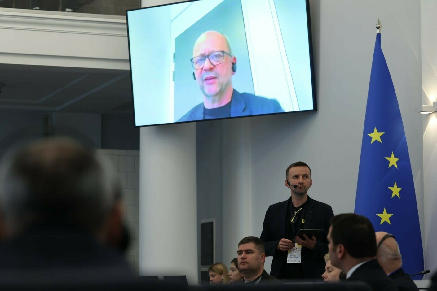 Онлайн-включення заступника директора DG Regio Нормундса Поппенса під час Форуму муніципального партнерства у Львові